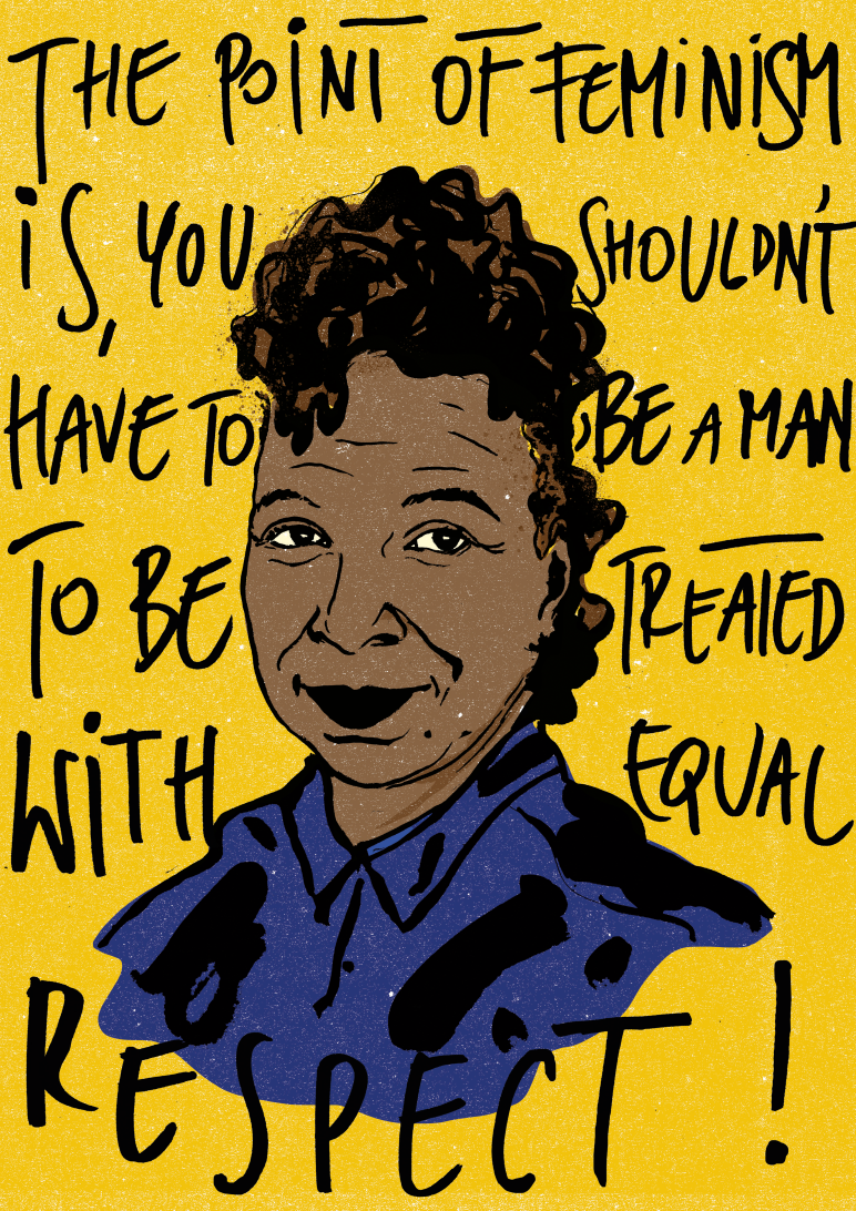 "The point of feminism is You shouldn't have to be a men to be treated with equal respect!"
